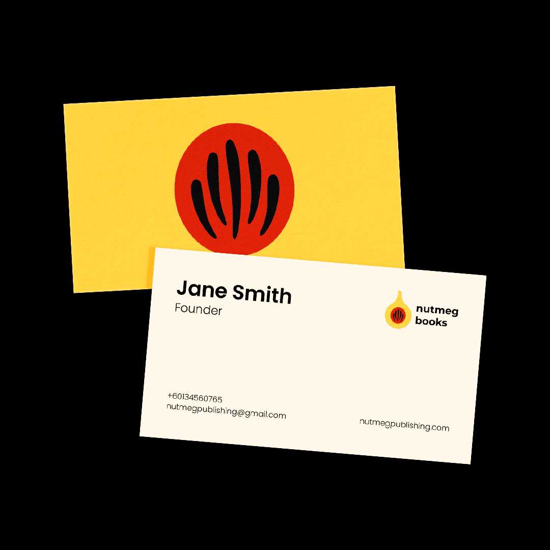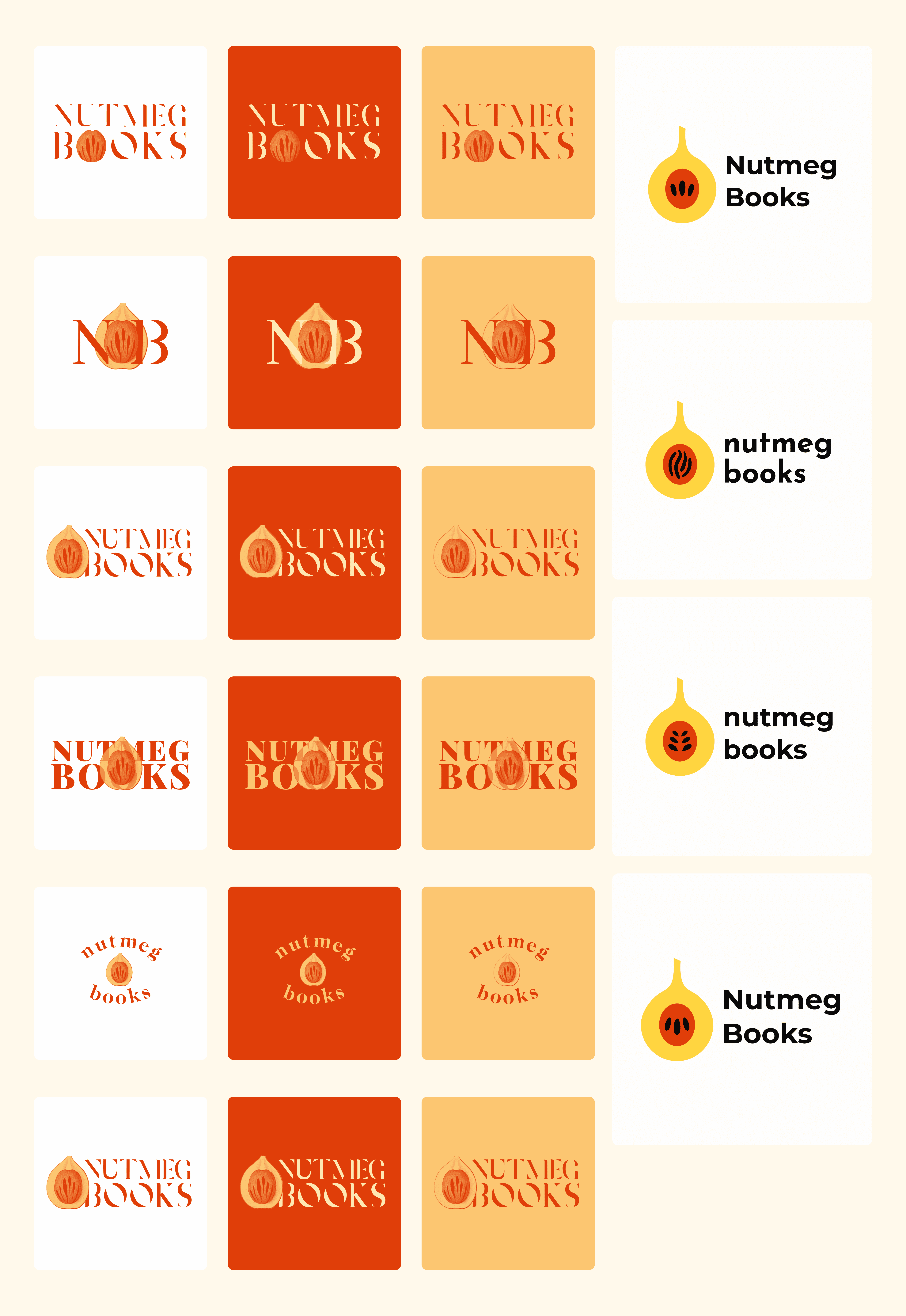 The brand colour palette is meant to reflect the primary colours of a nutmeg which are red and yellow. Since Nutmeg Books is striving for a more modern and professional look, a simple sans serif font was suitable for the logo, directing more focus towards the nutmeg illustration.