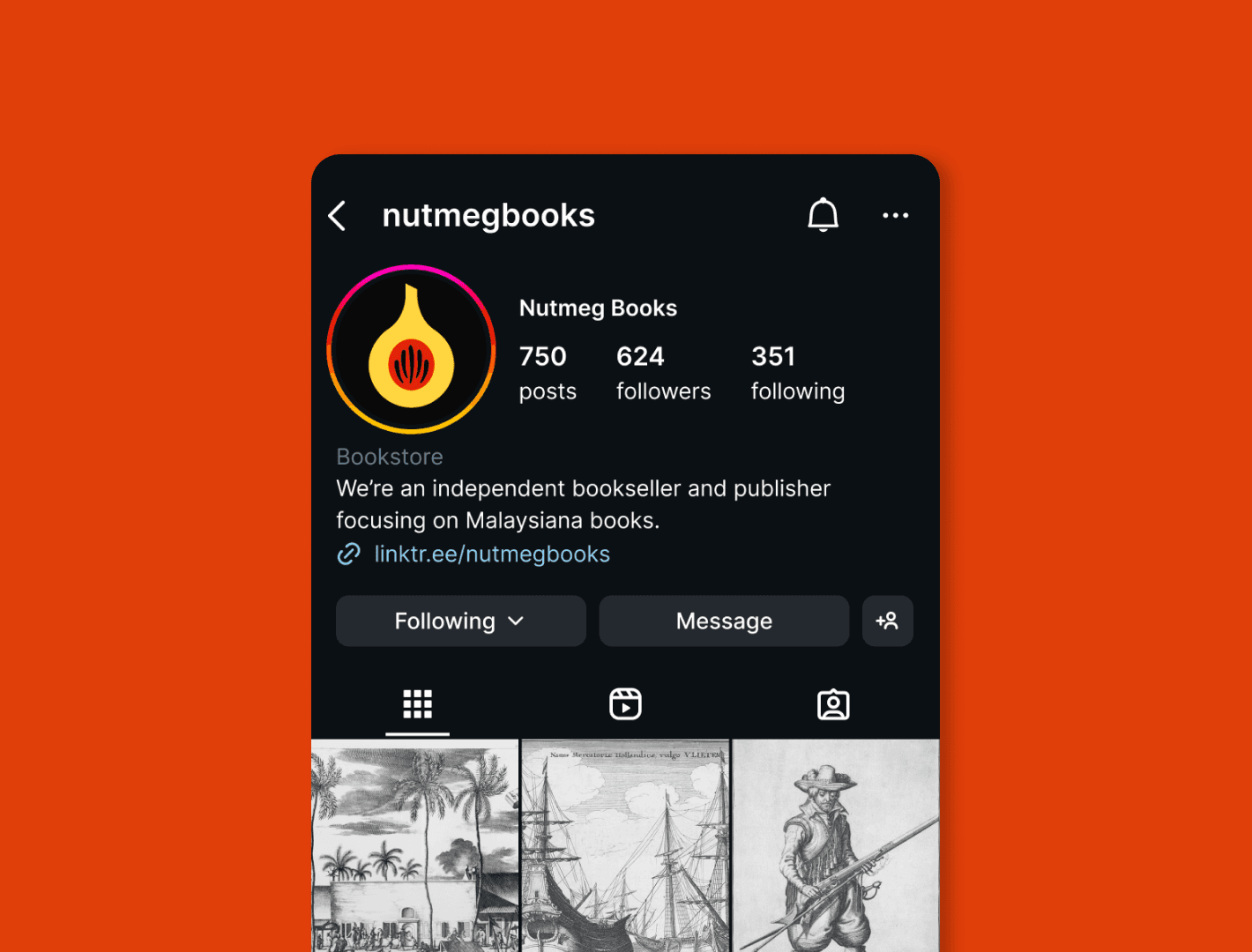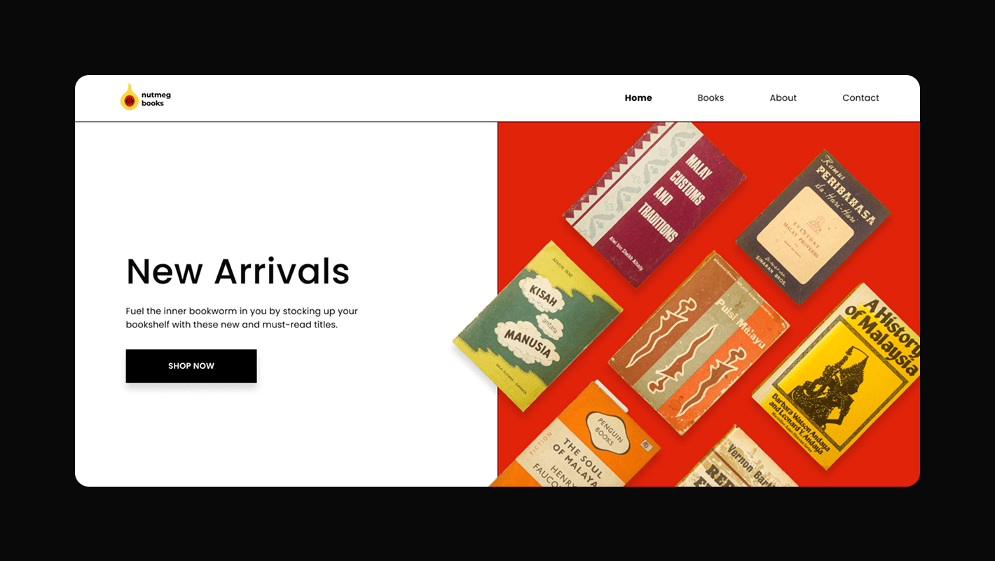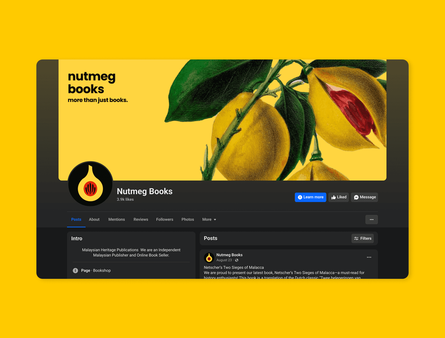 Nutmeg Books (formerly Nutmeg Publishing) is a local independent publisher and online distributor specialising in Malaysian history and culture, with roots dating back to 2008. Over the years, as more publishers and bookstores focusing on historical topics began to emerge, Nutmeg Books felt overshadowed by newer, more contemporary players. This prompted a refreshed visual identity that modernises their presence while still honouring their long-standing heritage in historical publications.